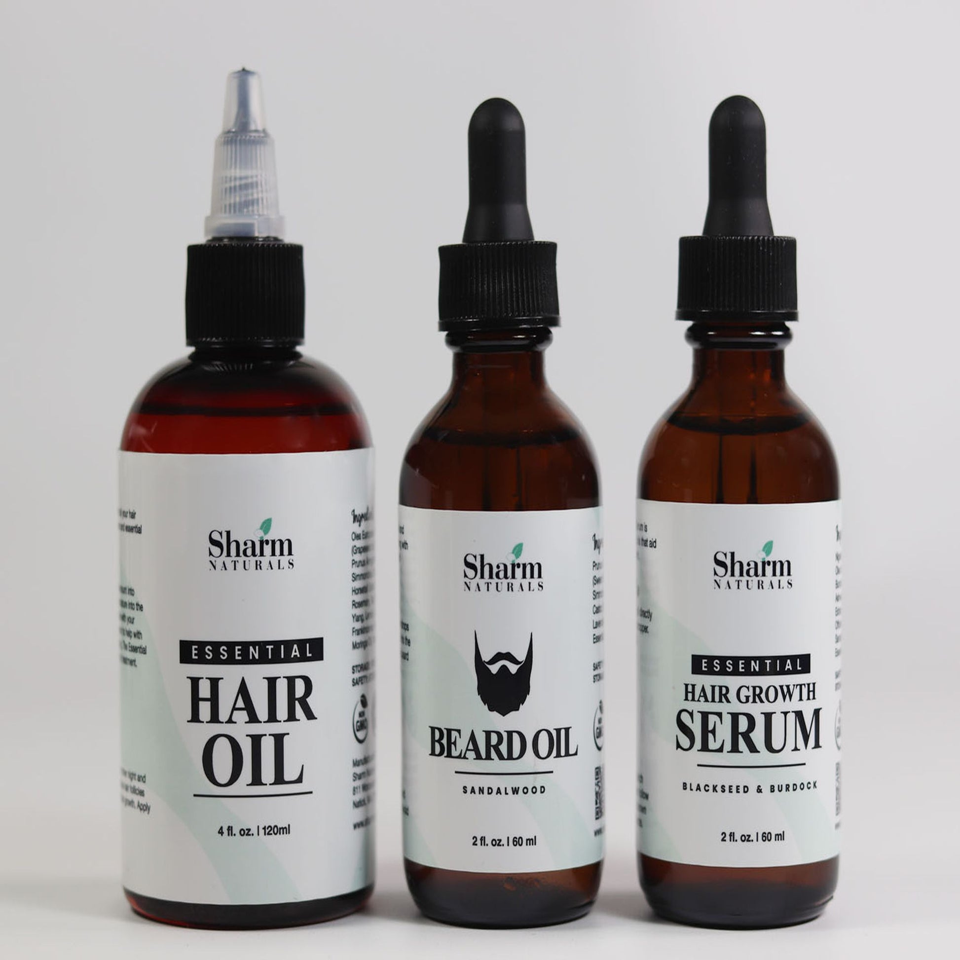 Essential Hair Growth Serum is packed with herbs and oils that aid in hair restore and growth.